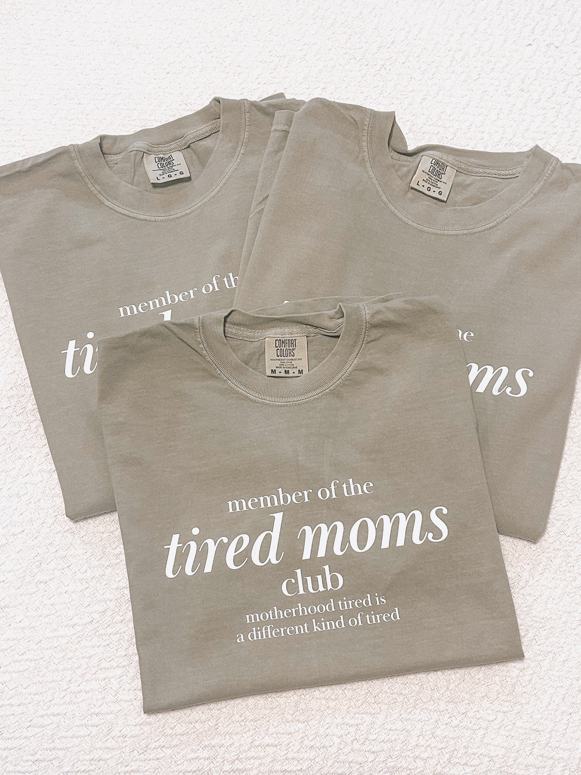 The Tired Moms Club Tee is a cozy essential for every mama running on caffeine, chaos, and cuddles. With its soft fabric and minimal white lettering, this tee speaks for moms everywhere: motherhood tired is a different kind of tired.